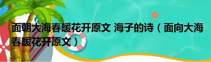 大家好,今天小六子来为大家解答以下的问题,关于面朝大海春暖花开原文 海子的诗,面向大海春暖花开原文这个很多人还不知道,现在让我们一起来看看吧!