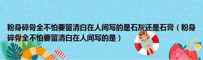 大家好,今天小六子来为大家解答以下的问题,关于粉身碎骨全不怕要留清白在人间写的是石灰还是石膏,粉身碎骨全不怕要留清白在人间写的是这个很多人还不知道,现在让我们一起来看看吧!