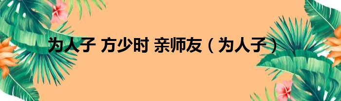 大家好,今天小六子来为大家解答以下的问题,关于为人子 方少时 亲师友,为人子这个很多人还不知道,现在让我们一起来看看吧!