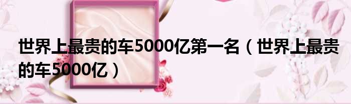 大家好,今天小六子来为大家解答以下的问题,关于世界上最贵的车5000亿第一名,世界上最贵的车5000亿这个很多人还不知道,现在让我们一起来看看吧!