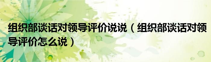 大家好,今天小六子来为大家解答以下的问题,关于组织部谈话对领导评价说说,组织部谈话对领导评价怎么说这个很多人还不知道,现在让我们一起来看看吧!