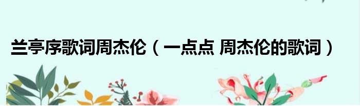 大家好,今天小六子来为大家解答以下的问题,关于兰亭序歌词周杰伦,一点点 周杰伦的歌词这个很多人还不知道,现在让我们一起来看看吧!
