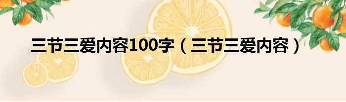 大家好,今天小六子来为大家解答以下的问题,关于三节三爱内容100字,三节三爱内容这个很多人还不知道,现在让我们一起来看看吧!