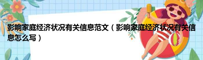 大家好,今天小六子来为大家解答以下的问题,关于影响家庭经济状况有关信息范文,影响家庭经济状况有关信息怎么写这个很多人还不知道,现在让我们一起来看看吧!