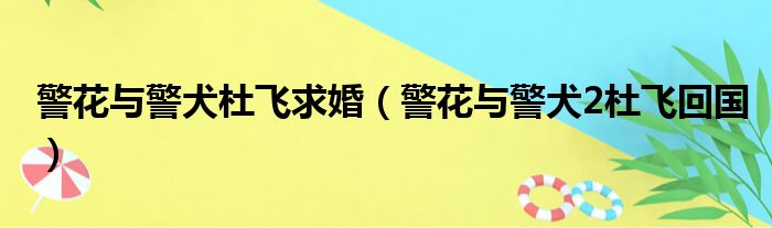 大家好,今天小六子来为大家解答以下的问题,关于警花与警犬杜飞求婚,警花与警犬2杜飞回国这个很多人还不知道,现在让我们一起来看看吧!