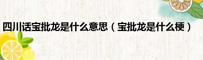 大家好,今天小六子来为大家解答以下的问题,关于四川话宝批龙是什么意思,宝批龙是什么梗这个很多人还不知道,现在让我们一起来看看吧!