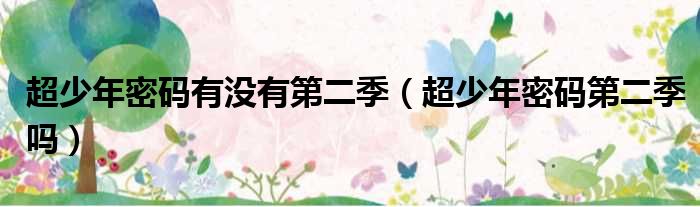 大家好,今天小六子来为大家解答以下的问题,关于超少年密码有没有第二季,超少年密码第二季吗这个很多人还不知道,现在让我们一起来看看吧!