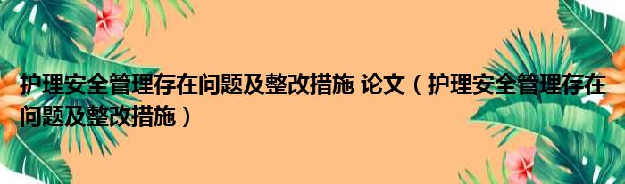 大家好,今天小六子来为大家解答以下的问题,关于护理安全管理存在问题及整改措施 论文,护理安全管理存在问题及整改措施这个很多人还不知道,现在让我们一起来看看吧!