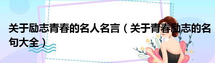 大家好,今天小六子来为大家解答以下的问题,关于关于励志青春的名人名言,关于青春励志的名句大全这个很多人还不知道,现在让我们一起来看看吧!