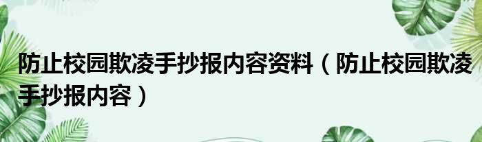 大家好,今天小六子来为大家解答以下的问题,关于防止校园欺凌手抄报内容资料,防止校园欺凌手抄报内容这个很多人还不知道,现在让我们一起来看看吧!
