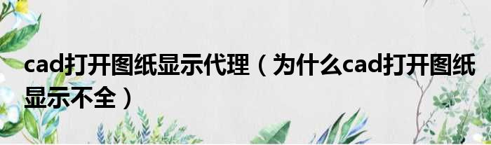 大家好,今天小六子来为大家解答以下的问题,关于cad打开图纸显示代理,为什么cad打开图纸显示不全这个很多人还不知道,现在让我们一起来看看吧!