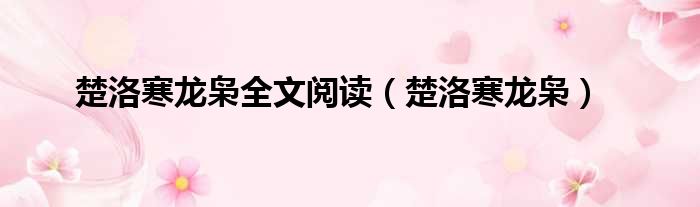 大家好,今天小六子来为大家解答以下的问题,关于楚洛寒龙枭全文阅读,楚洛寒龙枭这个很多人还不知道,现在让我们一起来看看吧!