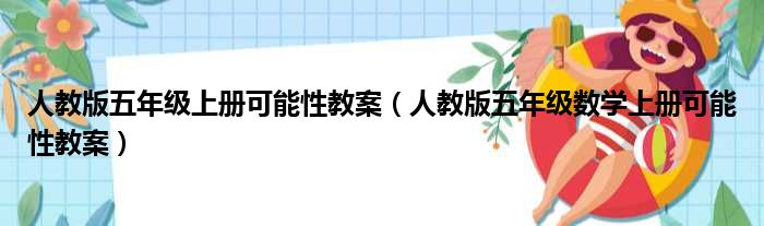 大家好,今天小六子来为大家解答以下的问题,关于人教版五年级上册可能性教案,人教版五年级数学上册可能性教案这个很多人还不知道,现在让我们一起来看看吧!
