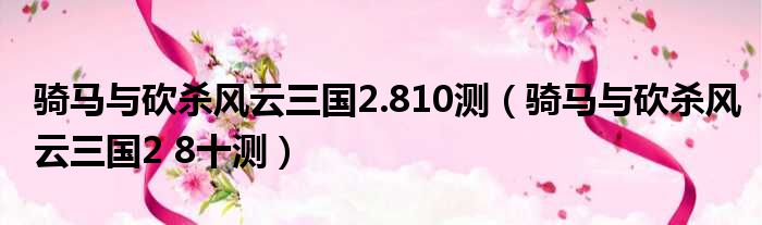 大家好,今天小六子来为大家解答以下的问题,关于骑马与砍杀风云三国2.810测,骑马与砍杀风云三国2 8十测这个很多人还不知道,现在让我们一起来看看吧!