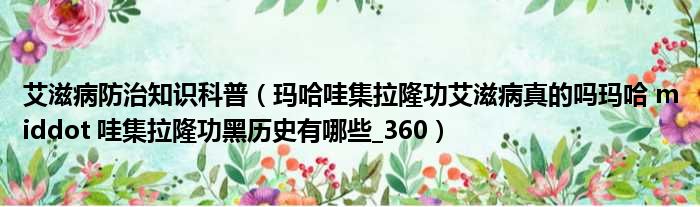 大家好,今天小六子来为大家解答以下的问题,关于艾滋病防治知识科普,玛哈哇集拉隆功艾滋病真的吗玛哈 middot 哇集拉隆功黑历史有哪些_360这个很多人还不知道,现在让我们一起来看看吧!