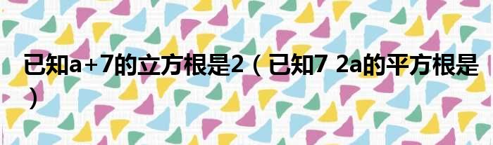 大家好,今天小六子来为大家解答以下的问题,关于已知a+7的立方根是2,已知7 2a的平方根是这个很多人还不知道,现在让我们一起来看看吧!