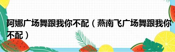大家好,今天小六子来为大家解答以下的问题,关于阿娜广场舞跟我你不配,燕南飞广场舞跟我你不配这个很多人还不知道,现在让我们一起来看看吧!