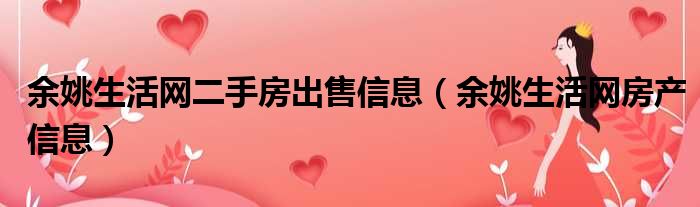 大家好,今天小六子来为大家解答以下的问题,关于余姚生活网二手房出售信息,余姚生活网房产信息这个很多人还不知道,现在让我们一起来看看吧!