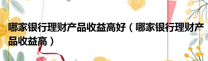 大家好,今天小六子来为大家解答以下的问题,关于哪家银行理财产品收益高好,哪家银行理财产品收益高这个很多人还不知道,现在让我们一起来看看吧!