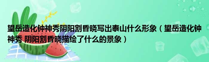 大家好,今天小六子来为大家解答以下的问题,关于望岳造化钟神秀阴阳割昏晓写出泰山什么形象,望岳造化钟神秀 阴阳割昏晓描绘了什么的景象这个很多人还不知道,现在让我们一起来看看吧!