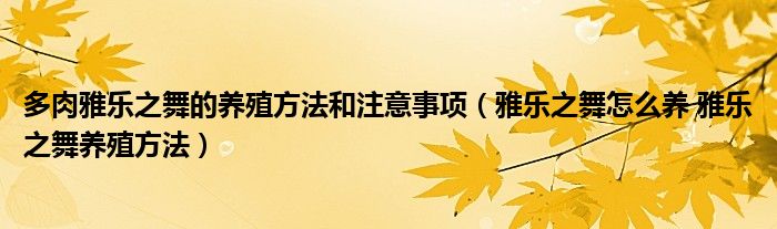 24、 以上就是雅乐之舞养殖的相关介绍,希望对你有所帮助。