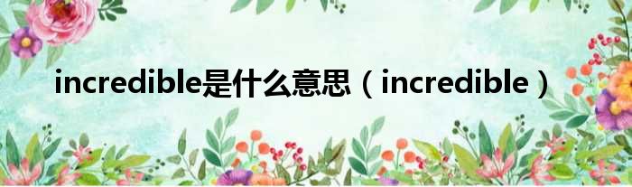 大家好,今天小六子来为大家解答以下的问题,关于incredible是什么意思,incredible这个很多人还不知道,现在让我们一起来看看吧!