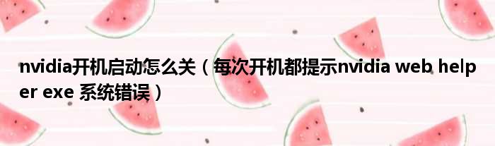 大家好,今天小六子来为大家解答以下的问题,关于nvidia开机启动怎么关,每次开机都提示nvidia web helper exe 系统错误这个很多人还不知道,现在让我们一起来看看吧!