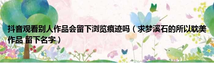 大家好,今天小六子来为大家解答以下的问题,关于抖音观看别人作品会留下浏览痕迹吗,求梦溪石的所以耽美作品 留下名字这个很多人还不知道,现在让我们一起来看看吧!