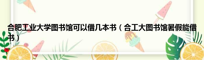 大家好,今天小六子来为大家解答以下的问题,关于合肥工业大学图书馆可以借几本书,合工大图书馆暑假能借书这个很多人还不知道,现在让我们一起来看看吧!