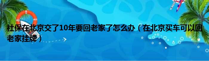 大家好,今天小六子来为大家解答以下的问题,关于社保在北京交了10年要回老家了怎么办,在北京买车可以回老家挂牌这个很多人还不知道,现在让我们一起来看看吧!