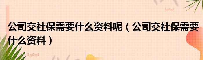 大家好,今天小六子来为大家解答以下的问题,关于公司交社保需要什么资料呢,公司交社保需要什么资料这个很多人还不知道,现在让我们一起来看看吧!