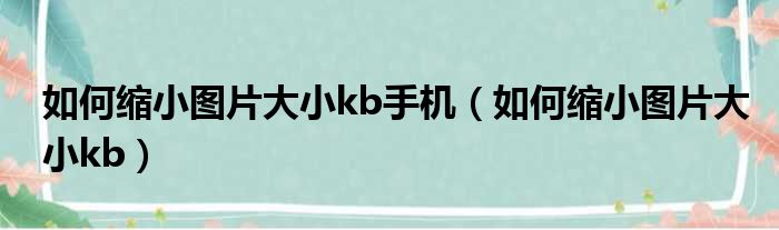 大家好,今天小六子来为大家解答以下的问题,关于如何缩小图片大小kb手机,如何缩小图片大小kb这个很多人还不知道,现在让我们一起来看看吧!