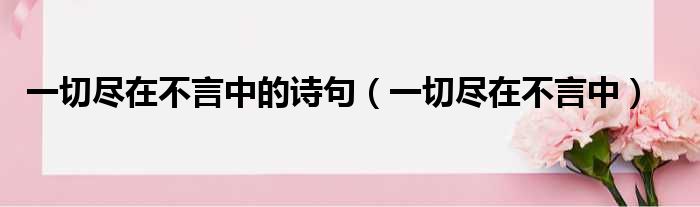 大家好,今天小六子来为大家解答以下的问题,关于一切尽在不言中的诗句,一切尽在不言中这个很多人还不知道,现在让我们一起来看看吧!