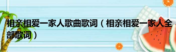 大家好,今天小六子来为大家解答以下的问题,关于相亲相爱一家人歌曲歌词,相亲相爱一家人全部歌词这个很多人还不知道,现在让我们一起来看看吧!