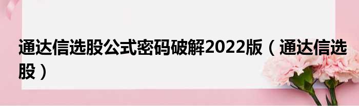 大家好,今天小六子来为大家解答以下的问题,关于通达信选股公式密码破解2022版,通达信选股这个很多人还不知道,现在让我们一起来看看吧!
