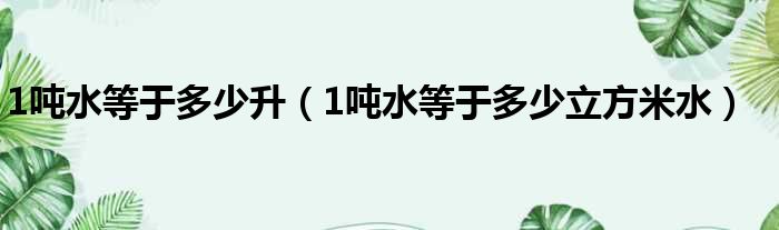 1、1吨=1000千克 1立方米=1000升;而水的密度为常温是1000千克每立方米;故:1吨=1000千克=1立方米水=1000升水。