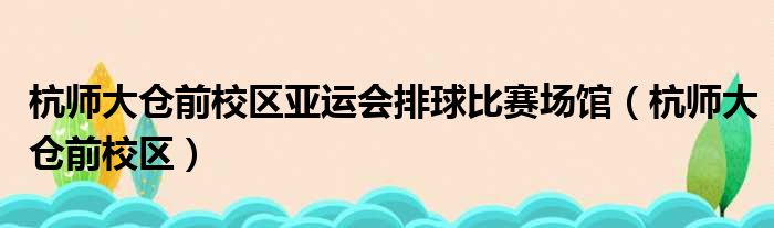 大家好,今天小六子来为大家解答以下的问题,关于杭师大仓前校区亚运会排球比赛场馆,杭师大仓前校区这个很多人还不知道,现在让我们一起来看看吧!