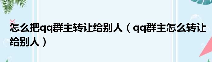 大家好,今天小六子来为大家解答以下的问题,关于怎么把qq群主转让给别人,qq群主怎么转让给别人这个很多人还不知道,现在让我们一起来看看吧!