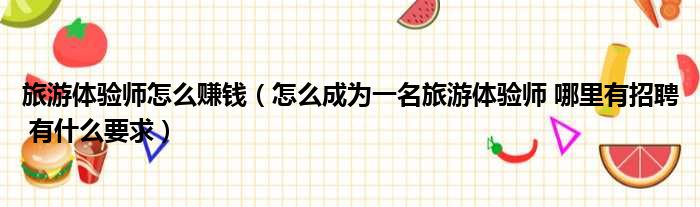 大家好,今天小六子来为大家解答以下的问题,关于旅游体验师怎么赚钱,怎么成为一名旅游体验师 哪里有招聘 有什么要求这个很多人还不知道,现在让我们一起来看看吧!