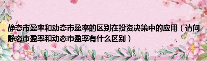 大家好,今天小六子来为大家解答以下的问题,关于静态市盈率和动态市盈率的区别在投资决策中的应用,请问静态市盈率和动态市盈率有什么区别这个很多人还不知道,现在让我们一起来看看吧!