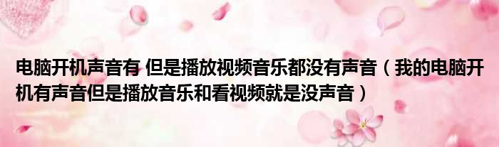 大家好,今天小六子来为大家解答以下的问题,关于电脑开机声音有 但是播放视频音乐都没有声音,我的电脑开机有声音但是播放音乐和看视频就是没声音这个很多人还不知道,现在让我们一起来看看吧!