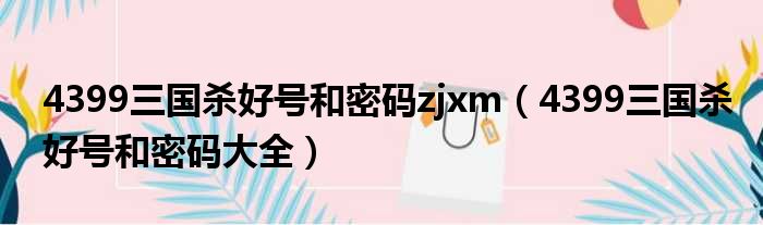 4399三国杀好号和密码zjxm 4399三国杀好号和密码大全 网络整理 经验 2023-07-05 10:02:23 大家好,今天小六子来为大家解答以下的问题,关于4399三国杀好号和密码zjxm,4399三国杀好号和密码大全这个很多人还不知道,现在让我们一起来看看吧!1、帐号1456789456 密码456888asd。本文分享完毕,希望对你有所帮助。 声明:免责声明:本文来源网友投稿及网络整合仅代表文章作者的个人观点,与本站无关。其原创性、真实性以及文中陈述文字和内容未经本站证实,对本文以及其中全部或者部分内容文字的真实性、完整性和原创性本站不作任何保证或承诺,请读者仅作参考,并自行核实相关内容。投诉邮箱:1765130767@qq.com。 本文地址:https://www.anfu123.com/jingyan/109536.html
