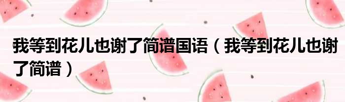 大家好,今天小六子来为大家解答以下的问题,关于我等到花儿也谢了简谱国语,我等到花儿也谢了简谱这个很多人还不知道,现在让我们一起来看看吧!