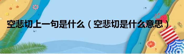 大家好,今天小六子来为大家解答以下的问题,关于空悲切上一句是什么,空悲切是什么意思这个很多人还不知道,现在让我们一起来看看吧!