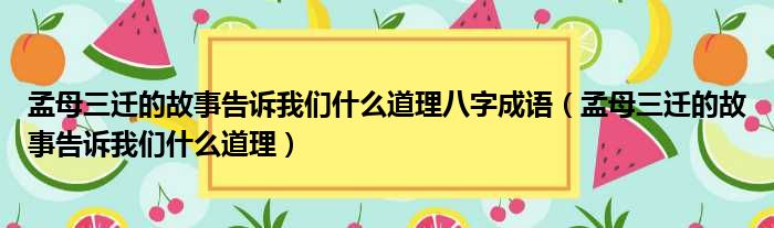 大家好,今天小六子来为大家解答以下的问题,关于孟母三迁的故事告诉我们什么道理八字成语,孟母三迁的故事告诉我们什么道理这个很多人还不知道,现在让我们一起来看看吧!