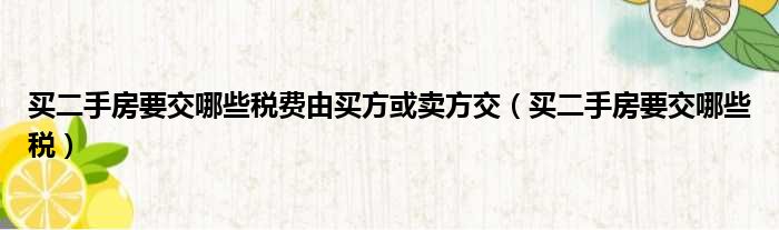大家好,今天小六子来为大家解答以下的问题,关于买二手房要交哪些税费由买方或卖方交,买二手房要交哪些税这个很多人还不知道,现在让我们一起来看看吧!