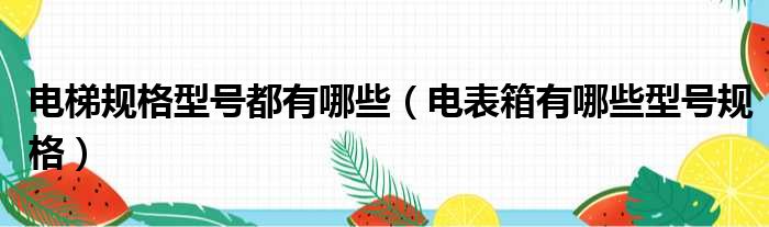 大家好,今天小六子来为大家解答以下的问题,关于电梯规格型号都有哪些,电表箱有哪些型号规格这个很多人还不知道,现在让我们一起来看看吧!