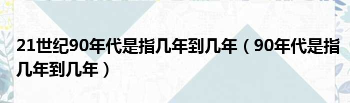 大家好,今天小六子来为大家解答以下的问题,关于21世纪90年代是指几年到几年,90年代是指几年到几年这个很多人还不知道,现在让我们一起来看看吧!
