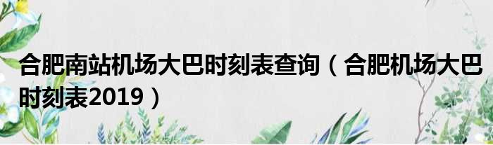 大家好,今天小六子来为大家解答以下的问题,关于合肥南站机场大巴时刻表查询,合肥机场大巴时刻表2019这个很多人还不知道,现在让我们一起来看看吧!