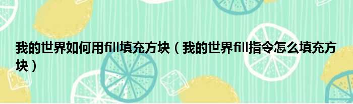 大家好,今天小六子来为大家解答以下的问题,关于我的世界如何用fill填充方块,我的世界fill指令怎么填充方块这个很多人还不知道,现在让我们一起来看看吧!